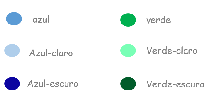 There is an infinite variety of colors. And one way that colors can vary is in their tone. In this case we use the words “claro“(light) or “escuro“(dark).
